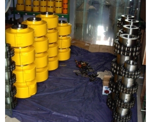 鏈條聯(lián)軸器具有結(jié)構(gòu)簡(jiǎn)單(四個(gè)件組成)、裝拆方便、拆卸時(shí)不用移動(dòng)被聯(lián)接的兩軸、尺寸緊湊、質(zhì)量輕、有   補(bǔ)償能力、對(duì)安裝精度要求不高、工作、壽命較長(zhǎng)、成本較低等優(yōu)點(diǎn)。滾子鏈聯(lián)軸器 可用于紡織、農(nóng)機(jī)、起重運(yùn)輸、工程、礦山、輕工、化工等機(jī)械的軸系傳動(dòng),適用于高溫、潮濕和多塵工況環(huán)境,不適用高速、有劇烈沖擊載荷和傳遞軸向力的場(chǎng)合,鏈條聯(lián)軸器應(yīng)在良好的潤(rùn)滑并有防護(hù)罩的條件下工作。鏈條聯(lián)軸器是利用公用的鏈條,同時(shí)與兩個(gè)齒數(shù)相同的并列鏈輪嚙合,不同結(jié)構(gòu)型式的鏈條聯(lián)軸器主要區(qū)別是采用不同的鏈條,常見(jiàn)的有雙排滾子鏈聯(lián)軸器、單排滾子鏈聯(lián)軸器、齒形鏈聯(lián)軸器、尼龍鏈聯(lián)軸器等。雙排滾子鏈聯(lián)軸器性能優(yōu)于其他結(jié)構(gòu)型式的聯(lián)軸器,為   廣泛采用KC滾子鏈聯(lián)軸器,我國(guó)亦已制訂為   標(biāo)準(zhǔn)GB6069-2002 。