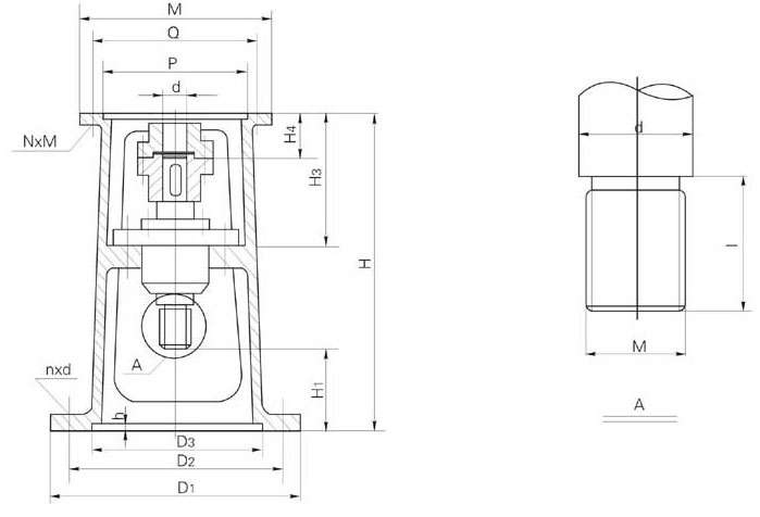 雙支點機架,不宜于選用無支點、單支點機架時,應(yīng)選用雙支點機架。但選用的雙支點機架下支點軸承結(jié)構(gòu)采用帶緊定套的錐孔調(diào)心滾子軸承便利于安裝維修,且攪拌軸與減速機之間的聯(lián)接 選用HL型彈性柱銷聯(lián)軸器。
